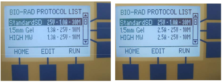 图10 “LIST”——〉“BIO-RAD”之后的界面, 需选择胶的大小和数量