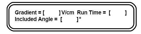 输入相应的参数后, 按ENTER键确认 ( 其中Ramping factor默认是线性增长, 如果欲采用默认值直接回车即可)。CHEF Mapper 屏幕会显示A Program is in memory. Please enter another command. 若需存储程序,按STORE PGM进行存储。按 START RUN即开始运行,此时可观察到电泳槽内电极开始出现气泡。