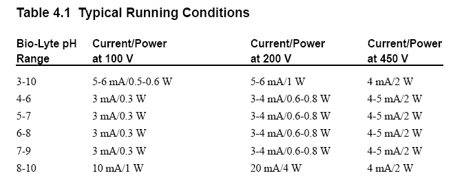 *Volume required for 40% ampholyte solutions (Bio-Lyte 3/10, 4/6, 5/7, 6/8, 7/9 ampholytes).