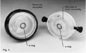 3.如图1 对于Standard focusing chamber 把小o-ring 放到inner assembly 的中心,把大O-型环 放到electrode assembly 上。而mini focusing chamber,在out portion上仅有1个大的O-型环这些环起了密封防漏液作用。