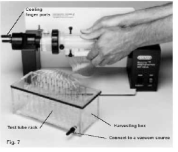 19.将主机上的开关打到harvest(收集)位置,聚焦槽会慢慢转到收集的位置:收集面冲下