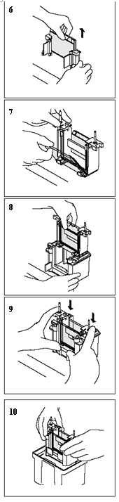 7.把玻璃板夹心放入电泳架,短玻璃板面冲里,做成电泳模块。