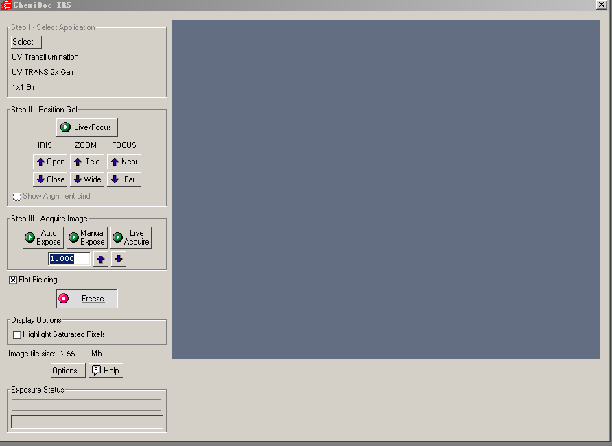 3.从File下拉菜单栏中选择ChemiDox XRS…,打开图像采集窗口