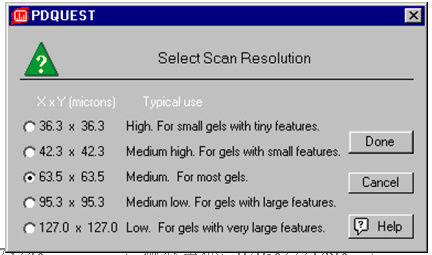 点击Step III. Select Resolutinon下面的Select按钮,打开Select Scan Resolution对话窗口。