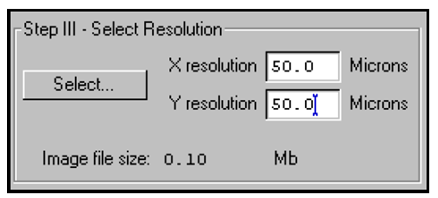 如果在Options对话窗口中选择Oversample,那么可在32-169微米范围内指定所需分辨率。可以在主获取窗中的X和Y分辨率中直接输入数值。