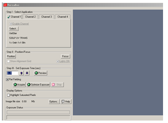 Optimize Exposure进行多桢图象实时采集,在对话框内定义曝光时间长短,采集几桢图象,在采集的多桢图象中选取满意的保存