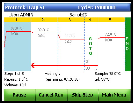 点击INCUBATE键可在任何时间内的特定温度下保存样品。可点击Cancel键终止保存。(不建议在4-10度下保存样品)